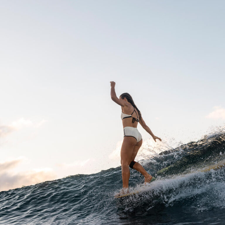 The core brief for this collection was to provide female surfers with enhanced stability during high-performance sessions without compromising on style.